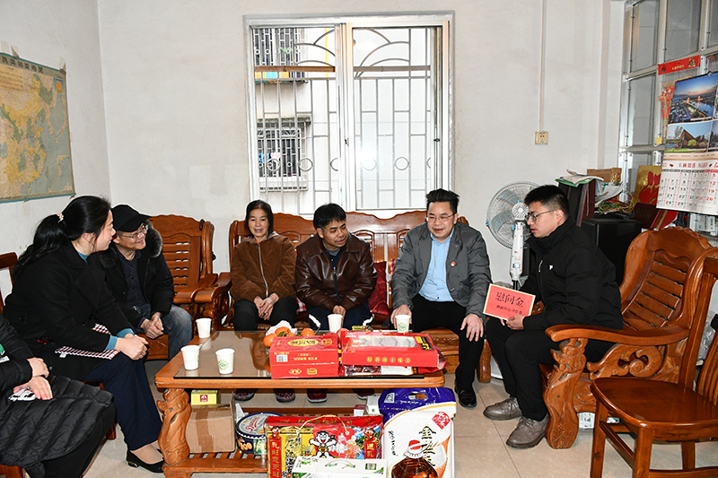 1月24日,公司黨委副書記、紀委書記覃永強帶隊到公司駐信洞村第一書記陸地鄧、工作隊員吳自桂家中走訪慰問,并送上春節慰問金和慰問品。公司鄉村振興辦公室成員、生產黨支部、綜合黨支部支委參加了走訪慰問。