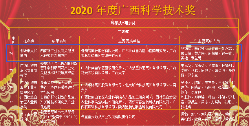喜報(bào)!兩面針公司獲廣西科技進(jìn)步獎(jiǎng)二等獎(jiǎng)