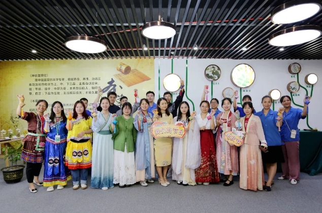 在兩面針牙膏博物館里,員工們還開展了中秋節(jié)民俗體驗活動——制作中藥香囊,這不僅是引導員工傳承非遺文化,還可以讓大家愉悅身心。一眼可見的古風布材,填充材料雜糅了本草清香藥材以及桂花,讓大家真正體會到“中秋節(jié)也叫桂花節(jié)”的傳統(tǒng)文化。穿針、引線、縫制……不到半個小時,一個個古風古韻的香囊成品就提在手中了,大家三三兩兩比畫手執(zhí)香囊的動作并合影留念。