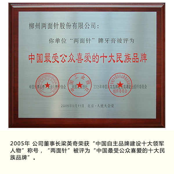 兩面針公司致力于中草藥的研究與運(yùn)用,致力于提高人們的健康生活品質(zhì),是中藥牙膏生產(chǎn)技術(shù)領(lǐng)先型企業(yè),是中國(guó)口腔清潔護(hù)理用品工業(yè)協(xié)會(huì)副理事長(zhǎng)單位,是中草藥牙膏分標(biāo)委秘書處承擔(dān)單位,是《中藥牙膏》團(tuán)體標(biāo)準(zhǔn)牽頭起草單位,是行業(yè)內(nèi)首家通過ISO9001國(guó)際質(zhì)量體系認(rèn)證和首家獲準(zhǔn)設(shè)立博士后科研工作站的國(guó)家高新技術(shù)企業(yè)。