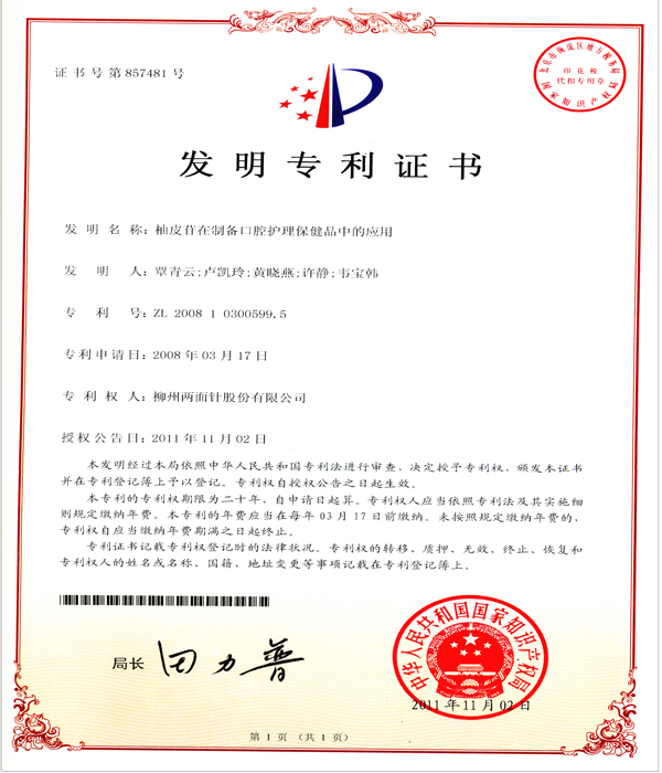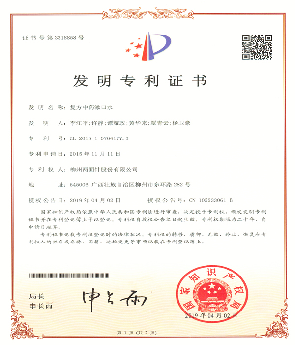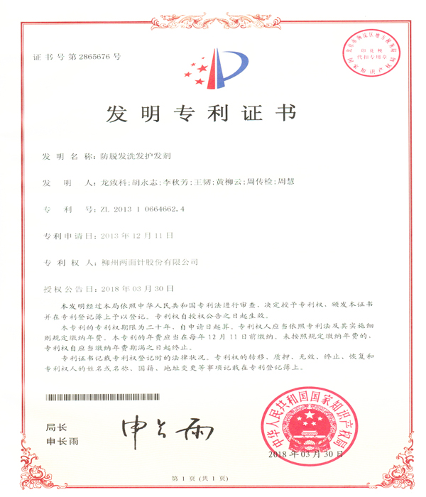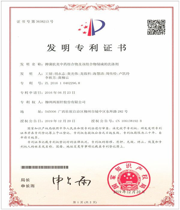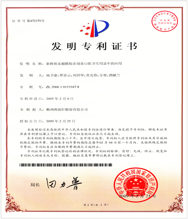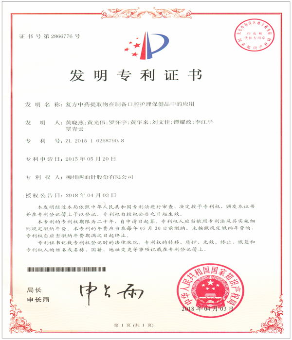 公司科研開發(fā)能力雄厚,擁有中國(guó)牙膏行業(yè)第一個(gè)博士后科研工作站,是 “全國(guó)口腔護(hù)理用品標(biāo)準(zhǔn)化技術(shù)委員會(huì)中草藥牙膏分技術(shù)委員會(huì)”秘書處的承擔(dān)單位、“國(guó)家第三批創(chuàng)新型試點(diǎn)企業(yè)”、“國(guó)家高新技術(shù)企業(yè)”,獲批成立“自治區(qū)級(jí)技術(shù)中心”、“自治區(qū)級(jí)研發(fā)中心”,建有兩面針GAP研究基地,規(guī)模化規(guī)范化種植兩面針?biāo)幉模WC藥材質(zhì)量。 技術(shù)中心現(xiàn)有獨(dú)立完善、功能齊全的研發(fā)實(shí)驗(yàn)場(chǎng)所1500平方米,配備先進(jìn)的高效氣相色譜儀、高效液相色譜儀、原子吸收分光光度計(jì)、Frymakoruma Dinex Lab真空均質(zhì)機(jī)等研發(fā)及分析儀器和設(shè)備,中心還分別設(shè)有:口腔產(chǎn)品研究室、洗化產(chǎn)品研究室、化學(xué)處理室、分析測(cè)試研究室、中藥提取研究室、產(chǎn)品體驗(yàn)室、微生物實(shí)驗(yàn)室等多個(gè)細(xì)分工程實(shí)驗(yàn)場(chǎng)所,滿足科研實(shí)驗(yàn)要求。 公司共有科研人員49人,中高級(jí)技術(shù)職稱人員占42.9%,其中教授級(jí)高工2人,高級(jí)工程師8人,工程師、農(nóng)藝師11人。擁有廣西科學(xué)技術(shù)專家4人,柳州市科學(xué)技術(shù)專家5人;廣西十百千人才工程第二層次人選 1人;柳州市“新世紀(jì)個(gè)十百人才工程”第二層次人才4人,第三層次人才8人;柳州市拔尖人才11人/次、優(yōu)秀青年科技人才8人/次;中國(guó)輕工業(yè)聯(lián)合會(huì)“大國(guó)工匠”1名;“廣西杰出工程師”1名, 形成了一支涵蓋精細(xì)化工、藥物化學(xué)、口腔醫(yī)學(xué)和香精香料等多學(xué)科的專業(yè)研發(fā)團(tuán)隊(duì)。 目前公司擁有有效專利61件,其中發(fā)明專利46件,實(shí)用新型專利2件,外觀設(shè)計(jì)專利13件。