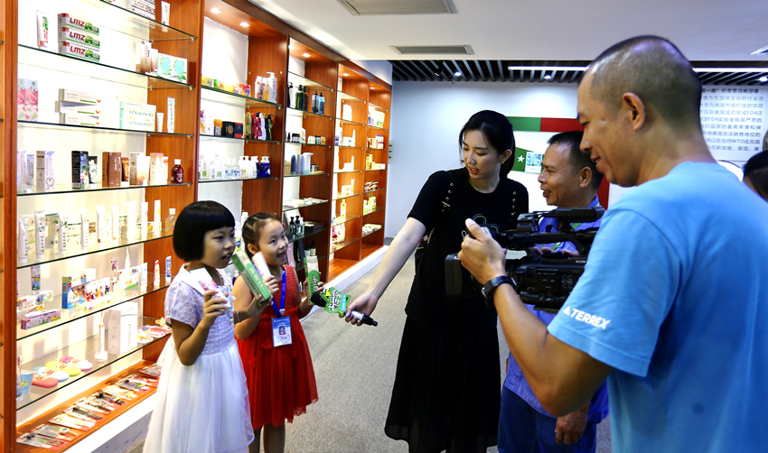 9月11日下午,柳州電視臺《尚學堂》欄目組的編導和2名小記者走進兩面針牙膏博物館,通過探訪兩面針牙膏的“前世今生”,讓電視機前的同學們一起認識和了解民族品牌“兩面針”。